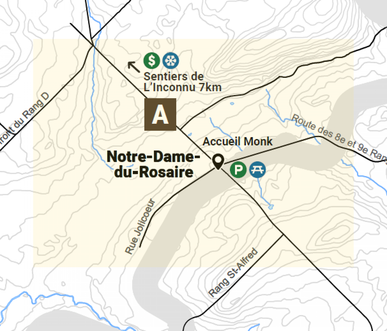 Situé à Notre-Dame-du-Rosaire, ce secteur du Parc plaira aux raquetteurs qui recherchent un sentier plutôt facile. Quant à l'amateur de ski de fond, il découvrira un superbe parcours de 18 km en milieu forestier. De plus, un circuit de 23 km dédié uniquement au Fatbike est proposé. Au coeur du village, l'été venu, prenez votre vélo et parcourez le sentier récréatif aménagé le long du tronçon Monk pour un trajet de 3 km en pleine nature.