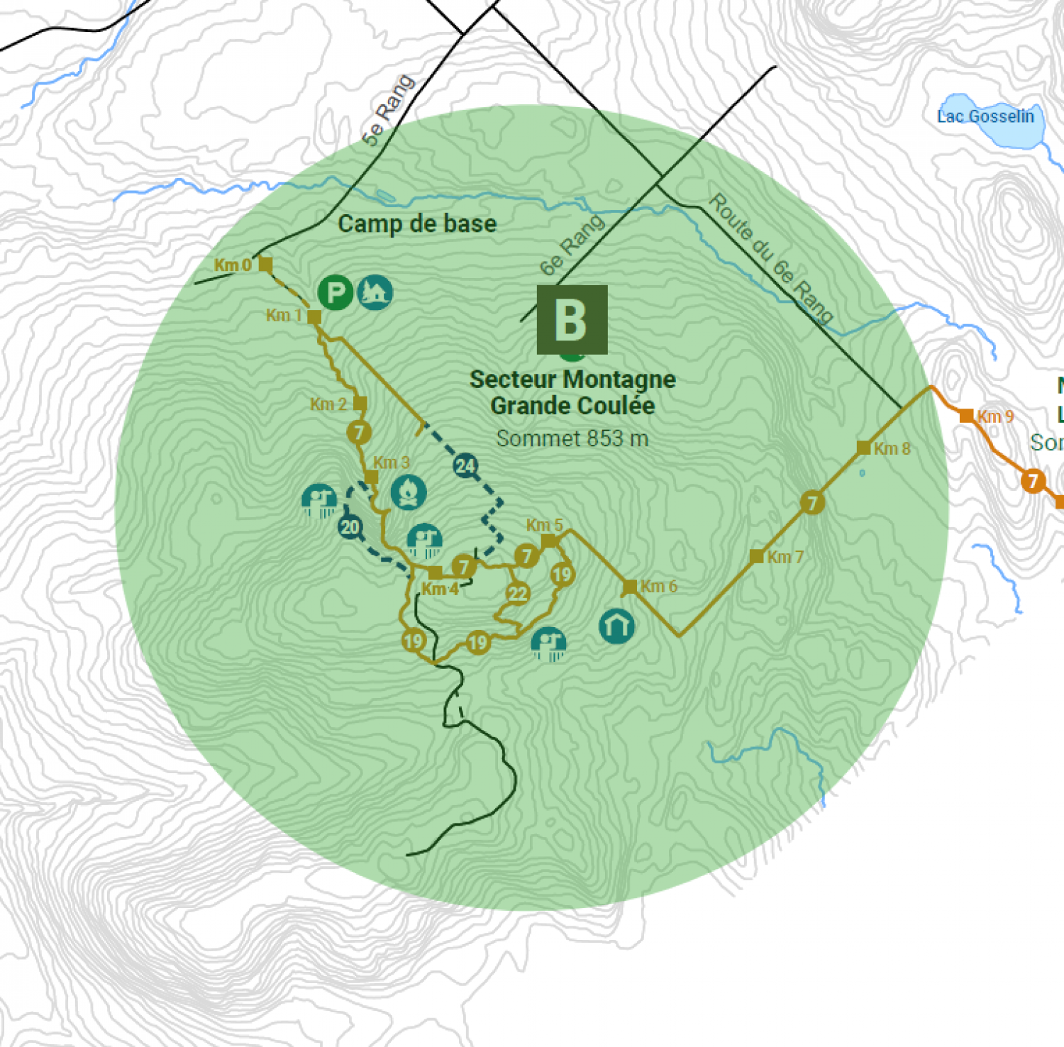 L'accès à ce secteur est régis par la passe du Centre plein air Sainte-Apolline, la passe du Parc des Appalaches n'en permet pas l'accès. Pour plus d'information concernant les tarifs du Centre plein air Sainte-Apolline, rendez-vous sur le site internet :