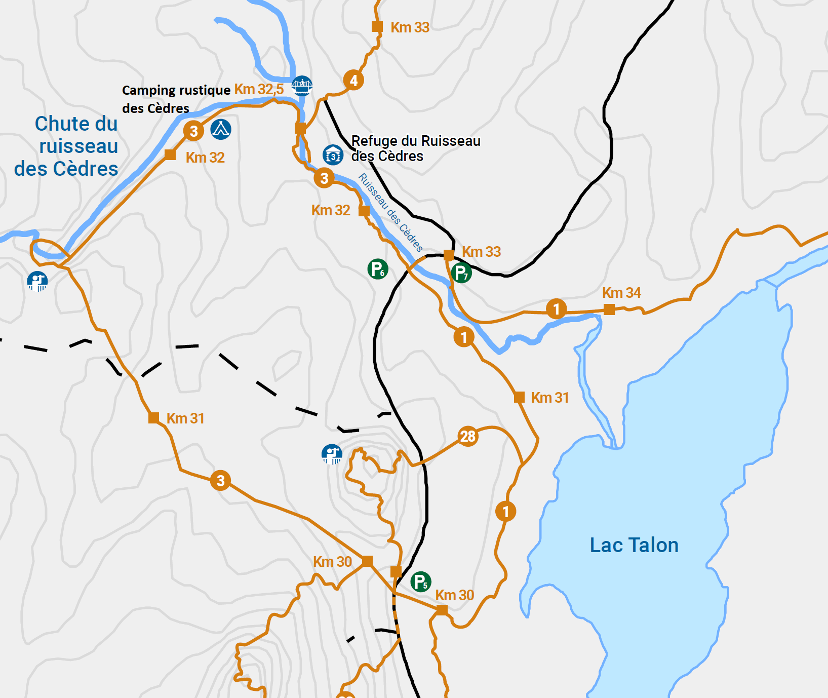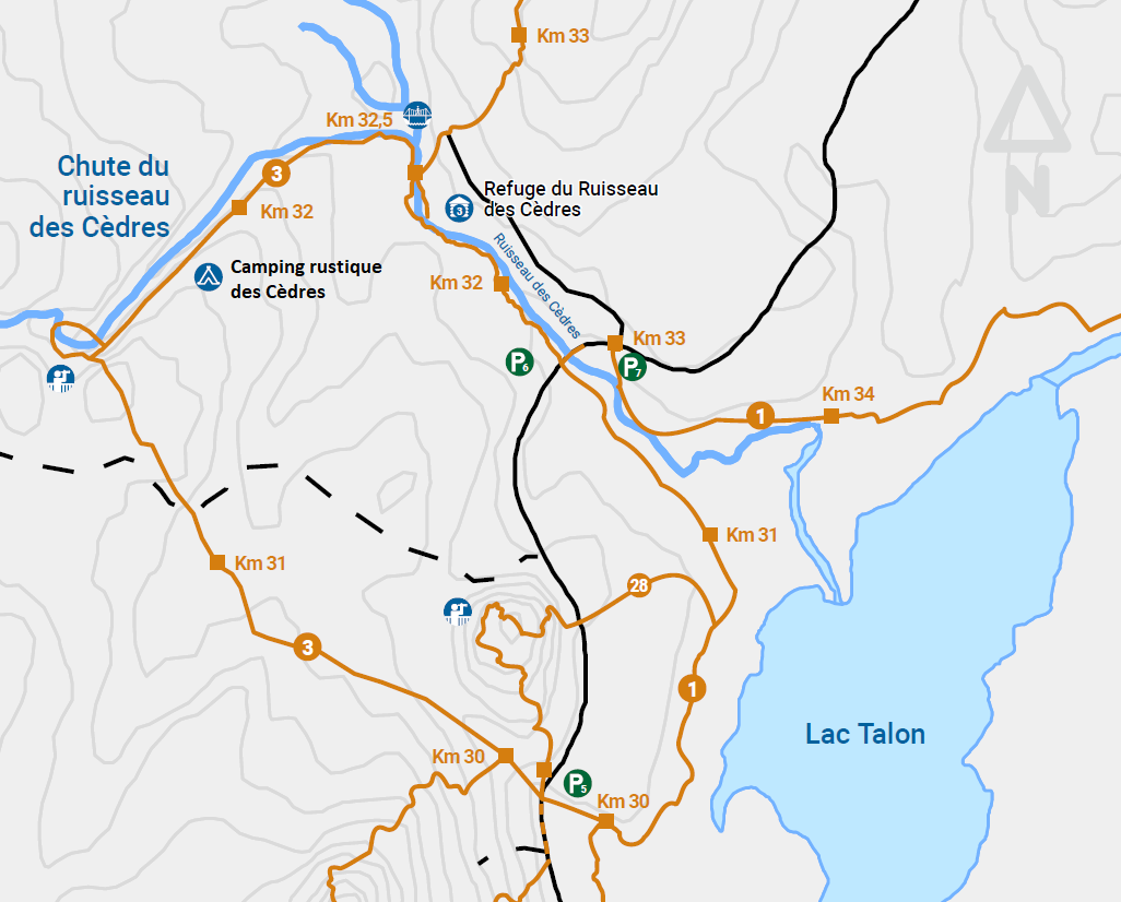 Le camping rustique des cèdres propose 1 emplacement de camping situé près du sentier 3, à 1.5 km du stationnement P6 et à 400 mètres de la chute du Ruisseau des cèdres. Vous allez être tranquillement installés en fôret bercés par le bruit du ruisseau des Cèdres.