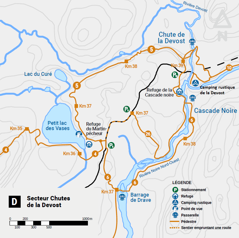 Le camping rustique de la Devost propose 3 emplacements situés près du sentier 10, à 400 mètres du stationnement P10 et non loin de la rivière Devost. Dans ce camping, un rond de feu et une table de pique-nique commune est mis à votre disposition !