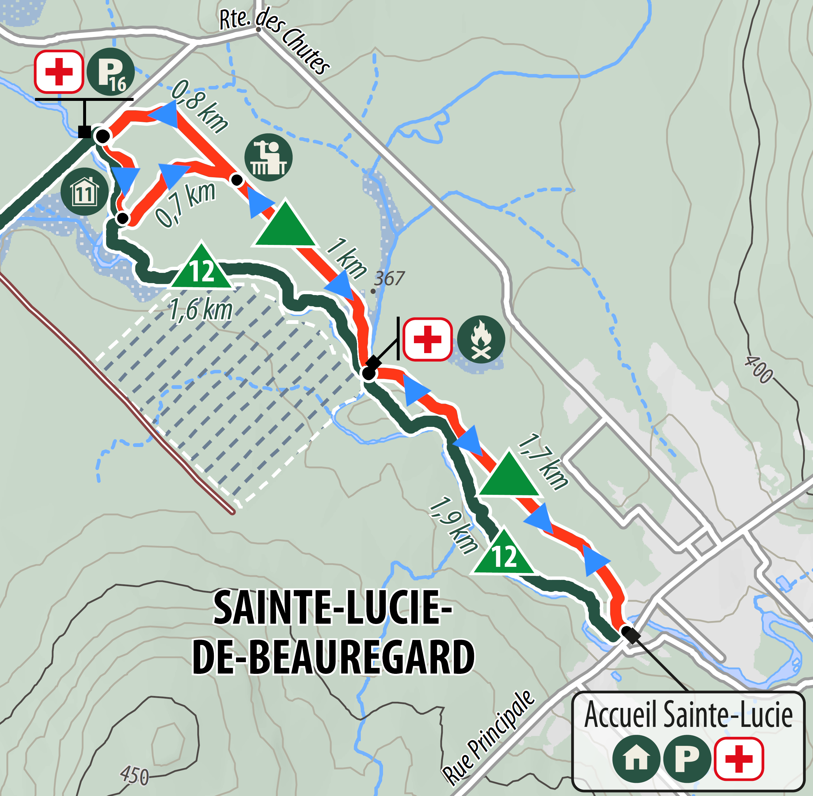 Départ du bureau d'accueil à Sainte-Lucie-de-Beauregard