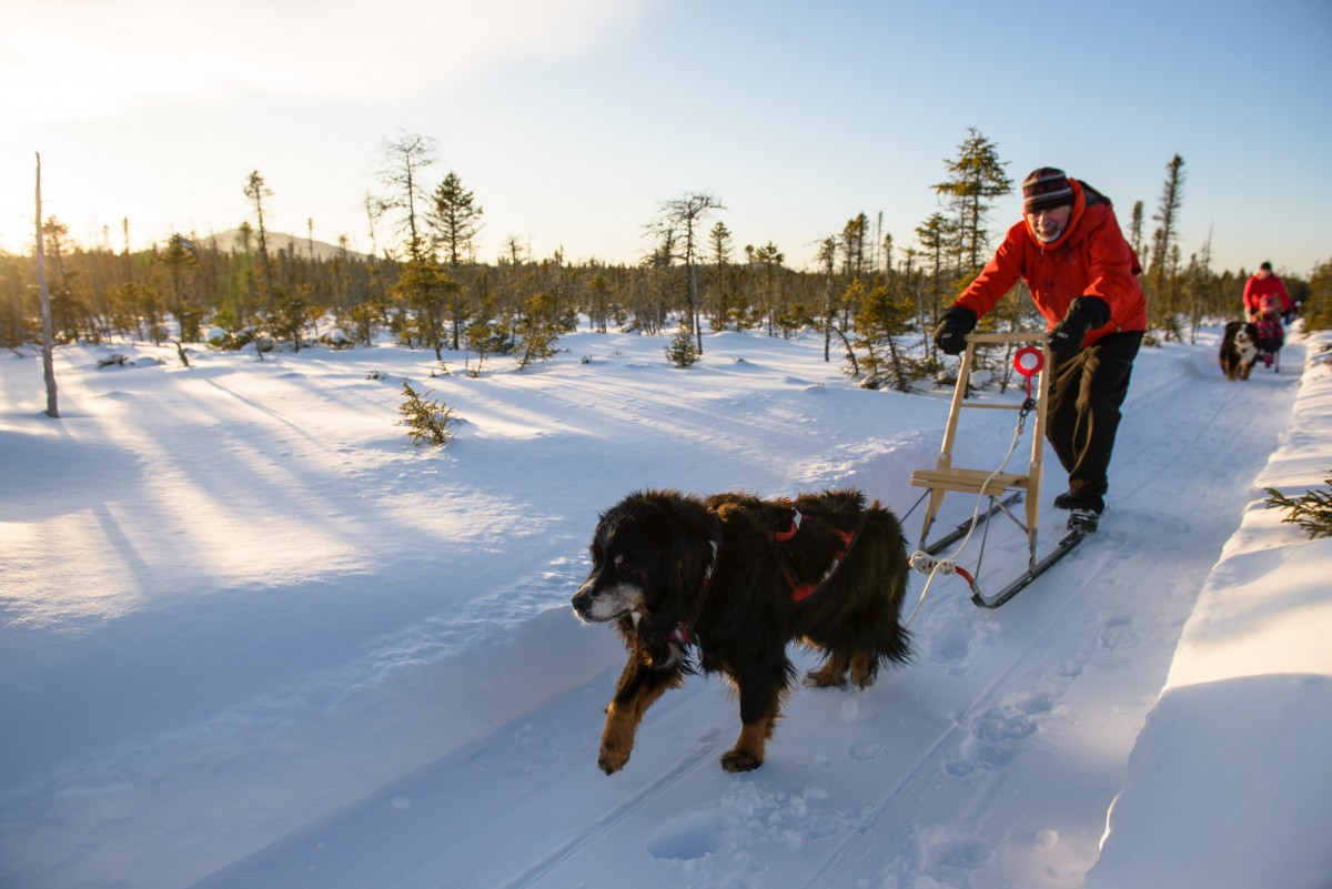 La trottinette des neiges peut se pratiquer seule ou encore avec un ou deux chiens. Pas besoin d'un Husky ou d'un chien spécifiquement entraîné pour pratiquer cette activité. Votre bon Bouvier Bernois ou votre Labrador pourra facilement vous tracter et vous aurez des heures de plaisirs en sa compagnie. Il est à noter que nous n'avons pas d'amis canins à votre disposition, vous devez avoir votre animal.